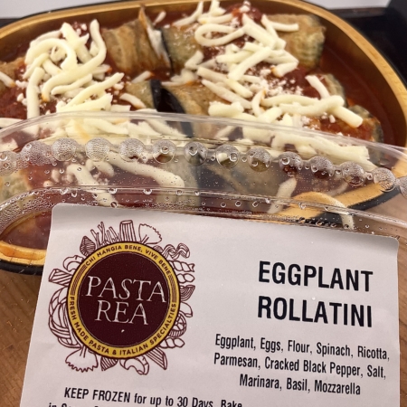 Crisp Eggplant slices layered in PASTA REA marinara, Mozzarella & Provolone; serves 20 – 24.