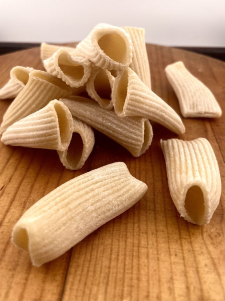 Gluten Free Rigatoni, a blend of garbanzo bean, cassava and other gluten free flours, egg free.